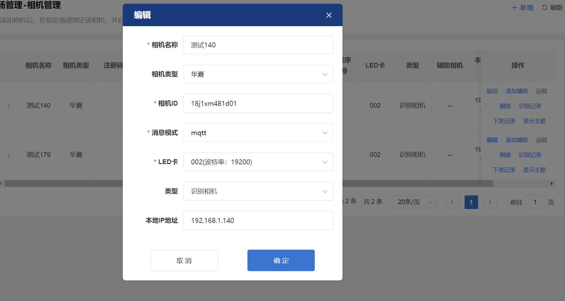 4、車道設置中添加相機,選擇華夏相機,相機ID在則通過瀏覽器進入設備中查看。