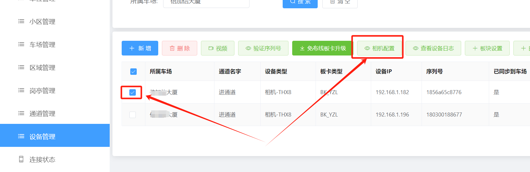 4、設備管理中添加設備,選擇華夏相機,相機ID在則通過第2步的一卡通調試工具讀取。