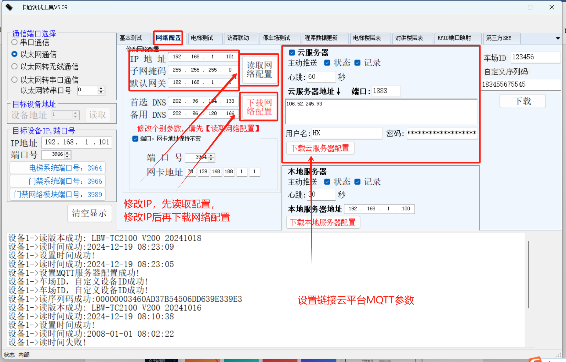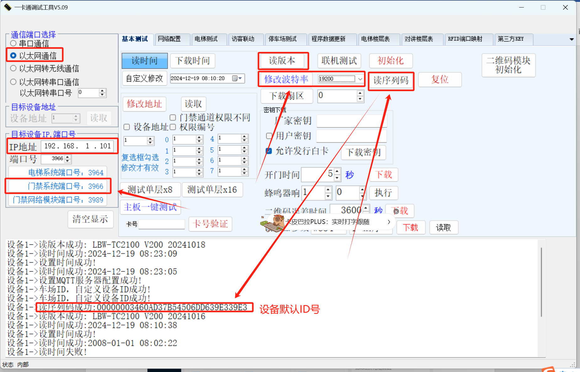 2、通過一卡通調(diào)試工具進(jìn)行參數(shù)設(shè)置,包括修改IP、修改波特率,讀取設(shè)備ID號(hào)等。